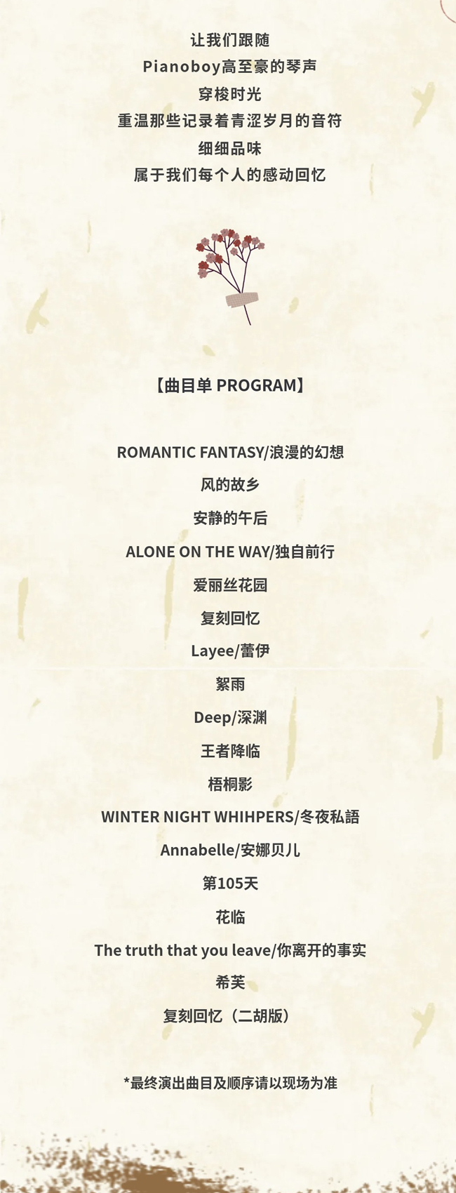 1:本站只提供演出相关信息介绍,购票请到正规渠道购买,敬请谅解!